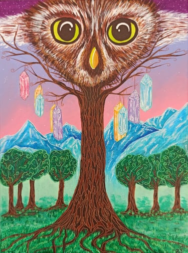 La Chouette est la fenaison de ce géant, apportant toute sa sagesse ancestrale, la vision des mondes sur plusieurs plan... l'ÂmeAgît !