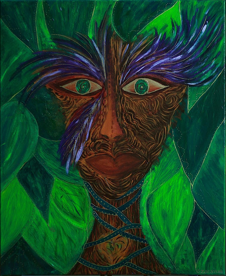 L'esprit du petit peuple forestier qui nous apparaît à travers les feuillages, et nous invite à rêver et partager la sagesse ancestrale de la Forêt. De tout temps, depuis qu'il y a des arbres, l'Esprit est là, gardien sans âge.