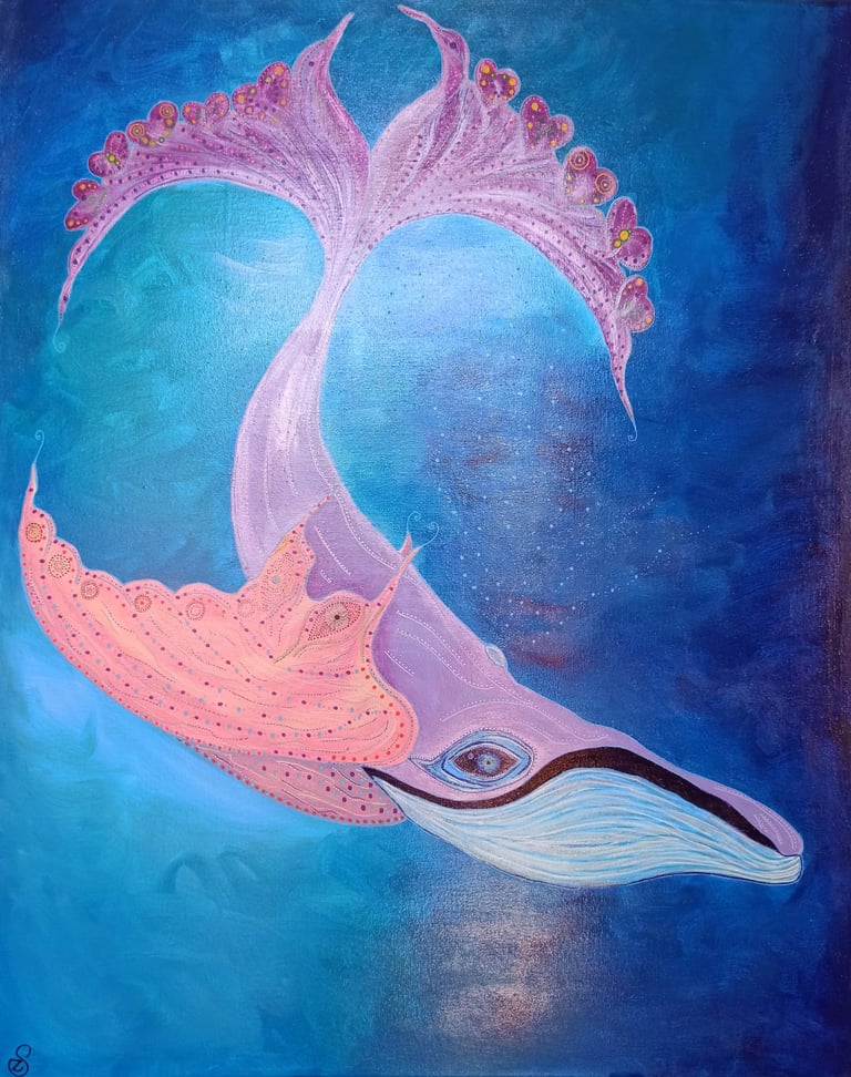 Des Baleines qui se parent le la magie de transmutation des papillons, faisant leur part de colibris dans le vaste bleu de Gaïa. Ces gardiennes séculaire qui sont les gardienne de la vie des océans de notre planète, perpétuant la vie, nous montrant le chemin vertueux.